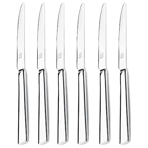 Composição: - 6 Facas de Mesa(ponta arredondada): 23,3 cm; tamanho lâmina 11,5 cm e espessura 8,5 mm Especificações: Marca: Hércules;Modelo: Mykonos 4000-040; Garantia: 3 meses;---- Aqui na Casa & Tendência você encontra os melhores utensílios domésticos e tudo que você precisa para sua cozinha ----