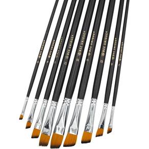 - Cerdas de Nylon: Oferecem excelente controle e durabilidade. - Variedade de Tamanhos: Permite realizar detalhes minuciosos e técnicas variadas. - Cabo de Madeira: Proporciona conforto e estabilidade durante o uso.