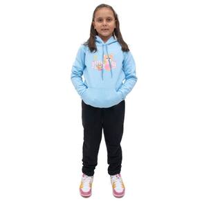 Kit de Abrigo Com Capuz Bolso e Calça Moletom Infantil Casaco de Frio Estampado Confortavel - Azul Claro - 8