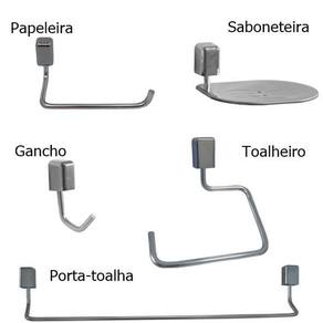 Kit De Acessórios Para Banheiro Com 5 Peças Steel Design Linha Città Kit de Acessórios com 5 peças para banheiro. Conjunto com traços minimalistas, ideal para seu banheiro e também lavabos.