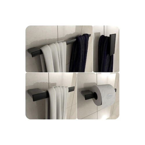 ITENS INCLUSOS 1 Porta Toalha de Banho 1 Porta Toalha de Rosto 1 Porta Papel Higiênico 1 Gancho