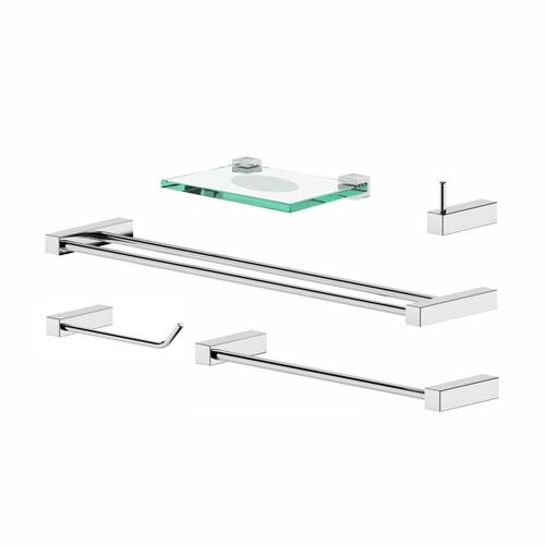 - 2090tr - 5 pçs (01 Cabide, 01 Papeleira, 01 Porta Toalha 30cm, 01 Porta Toalha Duplo 60cm, 01 Saboneteira)