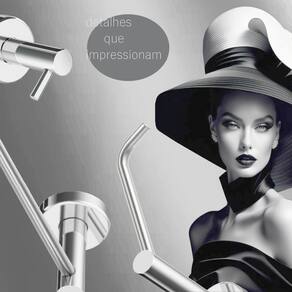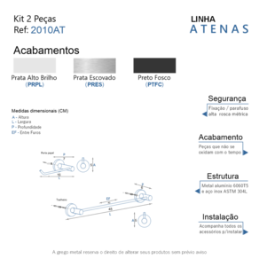 • Fabricado em metal aço inox e alumínio. • Disponível no Prata Alto Brilho, Escovado e Preto Fosco. • Pode ser instalado em parede, azulejo e porcelanato.