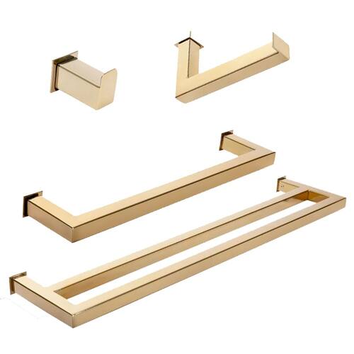 Kit de Acessórios Para Banheiro com 4 Peças em Aço Inox Dourado Brilhante Linha Larissa com toalheiro duplo - Stainless LAD4D