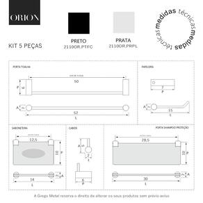 - Adquira estas delicadas peças e comece a desenhar o seu projeto beneficiando a toda família. Agora é só instalar e desfrutar da praticidade do kit 5 peças composto por 1 cabide, 1 papeleira, 1 saboneteira, 1 porta toalha 50cm, 1 porta shampoo 30cm que você comprou na Grego Metal - sua melhor escolha.