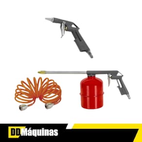 O Air Kit é formado por cinco peças: ferramenta para pintura, ferramenta para pulverização, ferramenta para limpeza, calibrador de pneus com manômetro e mangueira em espiral de 3 metros.