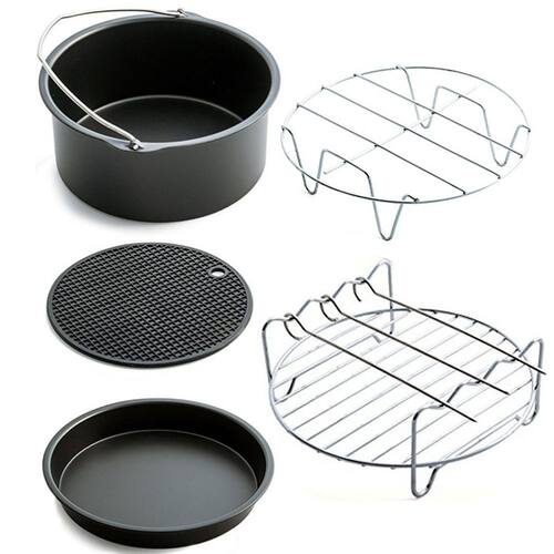 ConjuntoCaracterísticas destacadas 1. Materiais de alta qualidade e livres de BPA: a cesta de bolo antiaderente e a forma de pizza são feitas de aço inoxidável e aço carbono, que tem muitas propriedades excelentes, como antiaderente, antimofo e durabilidade 2. Expanda seus métodos de cozimento: Com a ajuda da plataforma de fritadeira de metal multifuncional, pode aumentar a possibilidade e a velocidade de cozimento 3! Fácil de limpar: todos os acessórios da fritadeira podem ser lavados na máquina de lavar louça, duráveis e fáceis de limpar rapidamente. Material: aço inoxidável, aço carbono Cor: Preto Veja menos