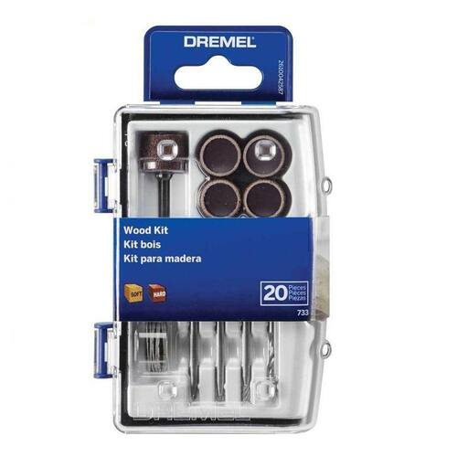 - Dê os toques finais aos seus projetos com o Kit Dremel Wood. Consiste em cortadores de alta velocidade, tambor de lixa, cintas de lixa, discos de lixa, escova de aço carbono, broca e mandril, que é tudo que você precisa para concluir suas tarefas de marcenaria. Este kit de acessórios de madeira de 20 peças é especialmente curado para lidar com todas as aplicações de madeira. Fornece armazenamento organizado de acessórios Dremel populares em um espaço compacto e pequeno. Este conjunto é uma ferramenta indispensável para a reforma da casa. Oferece um estojo de armazenamento reutilizável com uma tampa transparente e uma bandeja que se levanta para facilitar a organização dos bits incluídos. Seu tamanho pequeno torna mais fácil e rápido entrar em espaços apertados para lixar e polir designs intrincados. Este kit de acessórios seria um presente ideal para quem gosta de acabamento ou construção de móveis. Kit de