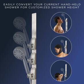 - CONVERTE O CHUVEIRO DE MÃO EXISTENTE EM UM CHUVEIRO COM ALTURA AJUSTÁVEL: personalize de forma rápida e fácil a altura do chuveiro deslizando o suporte do chuveiro para cima e para baixo no trilho magnético de aço inoxidável de 18 polegadas em um simples movimento.