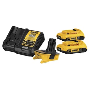 Kit de adaptador de bateria DEWALT 20V MAX, 18V a 20V, 2 baterias e carregador incluídos (DCA2203C) - ADAPTA BATERIAS DE 20V MAX* À MAIORIA DAS FERRAMENTAS DE 18V: consulte a descrição para obter informações completas sobre compatibilidade com a ferramenta DEWALT 18V - O KIT INCLUI: (2) baterias de íon de lítio DCB203 20V MAX* XR (2,0 Ah), (1) carregador de 12 V/20 V MAX* e (1) Adaptador de 18 V - 20 V MAX* - COMPATÍVEL COM FURADEIRAS COMPACTAS DE 18 V: não use adaptador, furadeiras compactas de 18 V e baterias premium (DCB200, DCB204, DCB204BT, DCB205) juntos - NÃO É COMPATÍVEL COM CARREGADORES DE 18 V: O adaptador requer o uso do DEWALT 20V MAX * Carregadores - NÃO COMPATÍVEIS COM BATERIAS FLEXVOLT DE 20V/60V
