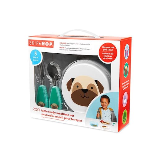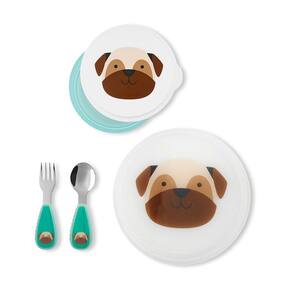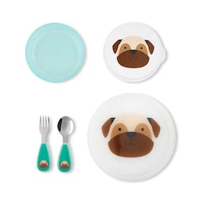 Kit de alimentação para cachorro Pug da marca Skip Hop, contendo prato, bowl e talher de alta qualidade, prático e divertido. Garanta uma alimentação completa e satisfatória para seu pet! Ean: 7798575360348