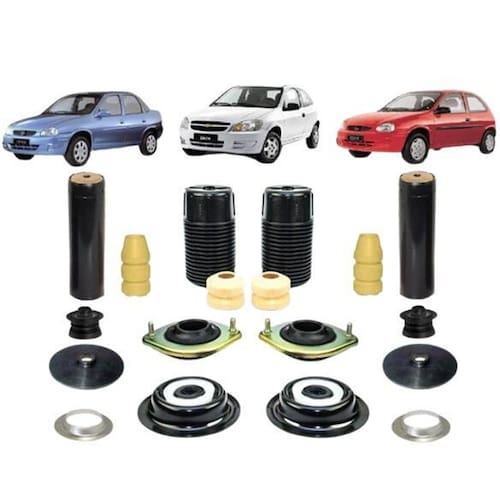 Kit de amortecedor dianteiro traseiro corsa celta classic qualidade kits de amortecedor 10 anos de mercado . Kit de amortecedor dianteiro e traseiro: Corsa todos à partir de 1996 exceto frente montana Corsa classic todos modelos Celta todos modelos Seu kit contém: 02 batentes dianteiros 02 coifas guarda pó dianteiros 02 coxins de amortecedor dianteiros 02 pratos com rolamento dianteiros 02 batentes traseiros 02 coifas guarda pó traseiros 02 calços de mola traseiro borracha 02 calços de mola traseiro aço 02 coxins traseiro borracha de fábrica 06 meses. No , atendemos as melhores auto peças do brasil. Obrigado pela atenção. Marca: Não Informado