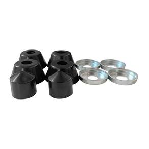 Kit de Amortecedores Owl Sports Invertido 90A Kit completo de amortecedores para longboard com trucks invertidos, em poliuretano de dureza de 90A. Acompanham todas as arruelas necessárias para a fixação nos trucks. O kit conta com 10 peças, sendo que 6 amortecedores e 4 arruelas que montam um skate inteiro. Ean: 7897570911934
