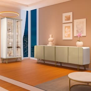 Transforme sua sala de estar em um espaço contemporâneo e elegante com nosso incrível Buffet Saluti e Cristaleira Evora.
