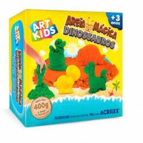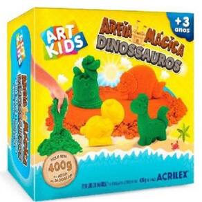 - Kit Areia Mágica Dinossauros 400g - A criançada vai adorar brincar com essa areia mágica! Tem uma textura super gostoso de mexer. - Como é uma Areia Cinética, ela não espalha como areia normal, então não faz muita bagunça. - No Kit contém: . 2 Potes de Areia Mágica 200g cada . 10 moldes de dinossauros - Produto não tóxico - Fabricante: Acrilex - Tamanho Aproximado da Embalagem: A 16 x C 17 x L 8 cm - Não recomendado para crianças menores de 3 anos