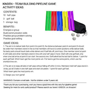 1. 1. O objetivo é entregar bolas do ponto A ao ponto B, a distância entre o ponto A e o ponto B deve ser maior do que os membros ficam na linha para que os membros tenham que trocar de posição enquanto entregam bolas. Nenhuma parte do corpo deve tocar bolas enquanto entrega e se a bola cair, perda de ponto. Um membro fica no ponto A com bolas e outros membros ficam na fila com um meio tubo na mão. Comece com uma bola de golfe, só quando uma bola chegar no ponto B pode iniciar a segunda. 1 ponto para cada bola. Qual time ganha mais pontos. Para as equipes obter os mesmos pontos, que usam o menor tempo de vitória.