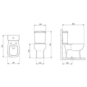 - Caixa acoplada com descarga 3/6 litros, com botão elevado;
