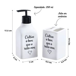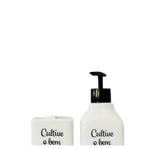 Porta sabonete com pump em lástico na cor preto. Produto super sofisticado com material fosco e estampa frente a peça.