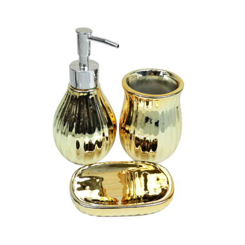KIT DE BANHEIRO EM CERÂMICA COM 03 PEÇAS EM ESTAMPA DEGRADÊ - 399.