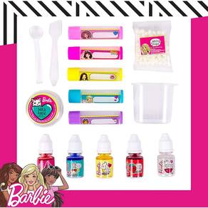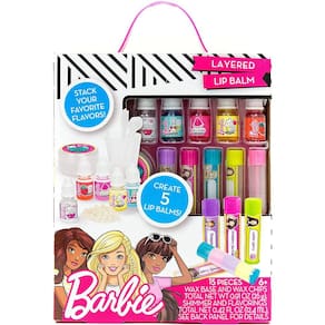PRODUTO INTERNACIONAL. PRODUTO INTERNACIONAL. Crie bálsamos labiais personalizados com o kit Barbie Em camadas de Batom Labial! Misture vários sabores frutados para criar bálsamos labiais em camadas loucas. Gire os sabores para criar um visual tie-dye, coloque-os em camadas para criar um visual colorido, ou mantenha-o simples e adicione um pouco de brilho a um bálsamo labial de cor única. Mantenha seus lábios macios e hidratados enquanto libera sua criatividade! Nomeie cada bálsamo labial com um giro criativo como Berries & Barbie ou Tropical Teresa! Recomendado para amantes da Barbie com 6 anos ou mais.