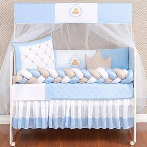 Kit de berço ursinho principe e princesa para bebe com edredom Cor: azul Kit de berço ursinho principe e princesa11 pecas kit americano de berço trança para bebe