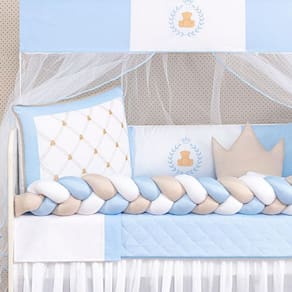 Kit de berço ursinho principe e princesa para bebe com edredom Cor: azul Kit de berço ursinho principe e princesa11 pecas kit americano de berço trança para bebe