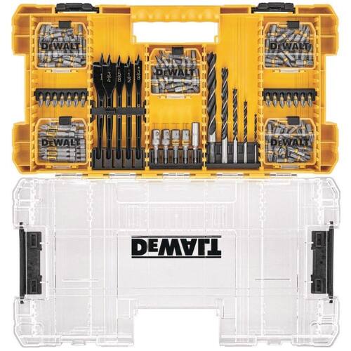 Kit de Bits e Brocas Max fit Tstak Dewalt ToughCase+ com 160 Peças - Amarelo Kit de Bits e Brocas Max fit Tstak Dewalt com 160 Peças - Amarelo Esses kit de Bits e Brocas Max Fit agora vêm com o sistema ToughCase+, a mais recente adição á nossa linha de armazenamento de acessórios. O Sistema ToughCase+ é um sistema de caixas Conectáveis projetado para otimizar o espaço de armazenamento e manter seus bits organizados. O sistema troca rápida permite a fácil remoção da broca e a tampa transparente permite que você veja o interior rapidamente. Os Bits dewalt max fit ajudam a maximizar o seu uso.Características: Sistema de armazenamento de acessórios conectáveis para otimizar o espaço de armazenamento ToughCase+ A tampa transparente permite que você veja facilmente o conteúdo Ideal para organizar bits soltos Encaixe rápido para fácil troca de bits e brocasConteudo da Embalagem: 1 Caixa compatível ToughCase+ 40 Ponta fenda cruzada 29 Ponta quadrada 39 Ponta fenda 37 Ponta Torx 5 Broca 3 pontas para madeira 5 Broca chata para madeira 1 Porta Bit Magnético 2 Adaptadores 2 Soquetes magnéticosCor: Amarelo e Preto de 12 meses contra defeitos de fábrica. Marca: Não Informado