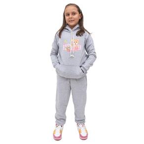 Kit de Blusa e Calça Moletom Infantil Menina Estampa Urso e Flores Costuras Reforçadas Inverno - Cinza - 14