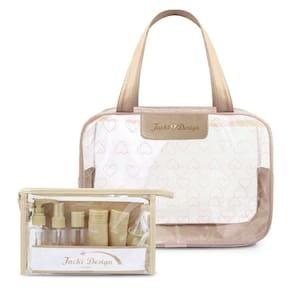 O Kit Bolsa Transparente com Frascos de Viagem da Jacki Design une praticidade e charme para acompanhar você em todas as ocasiões. Ideal para transportar cosméticos e itens de higiene com segurança, ele combina uma bolsa elegante com um conjunto completo de frascos, tudo com o padrão de qualidade Jacki Design.