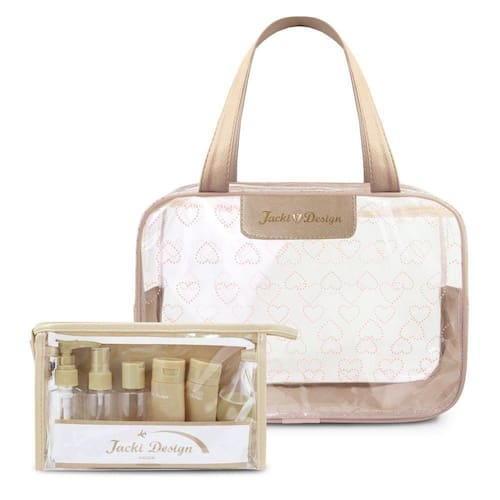 Kit Bolsa Transparente com Frascos de Viagem 10 Peças Jacki Design | Coleção LOVE