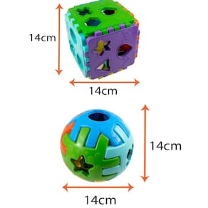 MEDIDAS: - Cubo: 14 x 14 cm - Bola: 14 cm