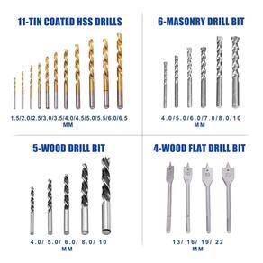 Conjuntos de brocas combinadas de 1, 100 peças incluem brocas hss revestidas de estanho, broca de madeira, conjunto de brocas de alvenaria, broca plana de madeira, brocas de mergulhador, pia, chave de porca, localizadores de parafuso, serra holl, arbor adapor para serras holl, plástico Calibre, porta bits. Acessórios universais para todas as marcas de brocas. E cada tipo de conjunto de brocas tem vários tamanhos diferentes, você pode escolher o adequado para o seu trabalho. Adequado para perfurar muitos tipos diferentes de materiais, como ferro, madeira, liga e assim por diante sobre. Estojo de zenamento resistente uma caixa de zenamento sólida e à prova de umidade que facilita o zenamento, a localização e o transporte de todas as brocas. Use material de alta qualidade, prometa que esta broca define qualidade. De acordo com diferentes materiais, escolha diferentes tipos de broca, termine o trabalho com eficiência Marca: Não Informado