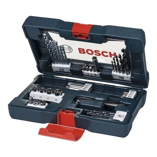 O Kit de Pontas e Brocas V-Line Bosch é um produto completo e ideal para quem busca praticidade para executar diferentes tipos de trabalho. O Kit inclui uma variedade de pontas e brocas, e diversos acessórios que auxiliam em aplicações de parafusamento, perfuração e fixação. O design das Pontas foi desenvolvido para evitar o desgaste da cabeça dos parafusos trazendo maior firmeza durante as aplicações. O Kit pode ser utilizado em diversas aplicações reparos, instalações, montagens e pequenos trabalhos em obras, serralherias e marcenarias. Acessórios compatíveis com Furadeiras e Parafusadeiras de qualquer marca do mercado.