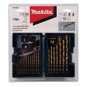 Kit De Brocas Hss-tin 19 Pecas D-67527 Makita Características: O conjunto de brocas de metal HSS-TIN D-67527 contém uma variedade de brocas de metal HSS-TIN, de 1,5 mm a 10 mm, fornecidas em uma caixa de plástico. Informações Técnicas: Marca: Makita Modelo: D-67527 Para metal HSS-TIN Contém 2 x 1,5 mm, 2 x 2 mm, 2 x 2,5 mm, 2 x 3 mm, 1 x 3,2 mm, 1 x 3,5 mm, 1 x 4 mm 1 x 4,5 mm, 1 x 5 mm, 1 x 5,5 mm, 1 x 6 mm, 1 x 6,5 mm, 1 x 7 mm, 1 x 8 mm e 1 x 10 mm