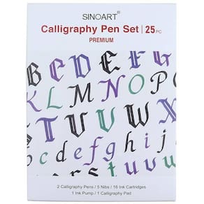 O kit de caligrafia sinoart com 25 peças é um conjunto ideal para quem deseja adentrar no mundo da escrita caligráfica. Composto por 5 penas nos tamanhos: extrafino, fino, médio, grosso e extragrosso, o que possibilita uma enorme versatilidade proporcionando diferentes traços. Acompanha no kit: 2 canetas caligráficas, 5 penas de tamanhos diferentes, um conversor de caneta tinteiro, um bloco para praticar e 16 cartuchos de tinta nas seguintes cores: 2 roxos, 2 vermelhos, 2 verdes, 2 marrons, 4 azuis e 4 pretos. Especificações técnicas