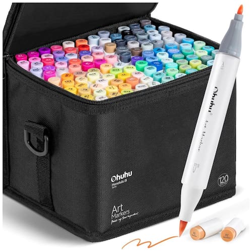 BRUSH FINE, DUPLA TIP, DOBRE A DIVERSÃO Amplie seus horizontes artísticos com o design de marcador de ponta dupla Escolha a ponta do pincel para pinceladas, traços caligráficos ou detalhes de cores com a ponta fina. O único limite é a sua imaginação. MISTURA FÁCIL, SEM MANCHAS Esqueça a coloração manchada e desigual. A tinta de alta qualidade combina perfeitamente para obter belos efeitos de coloração, mesmo para iniciantes. Além disso, sua arte nunca vai desbotar ou manchar com o tempo. 120 CORES VIBRANTES 1 LIQUIDIFICADOR SEM CORES O arco íris está ao seu alcance escolha entre 120 cores brilhantes e dê vida às suas ideias. Seja um livro de colorir ou uma obra prima em construção, sua arte com certeza vai brilhar com esses marcadores de pincel TINTA À BASE DE ÁLCOOL, SECA INSTANTANEAMENTE Nunca mais deixe a tinta molhada estragar o seu trabalho Desenhe sem manchas graças à sua fórmula à base de álcool de secagem rápida Marca: Não Informado