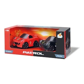 Características: Marca: Orange toys Cor: Vermelho/Preto Certificação: INMETRO Medidas: 19x11 Conteúdo da embalagem: 1 Carrinho de Policia e 1 um Bombeiro Patrol