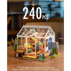 As baterias NÃO estão contidas. Prepare 2 pilhas AAA com antecedência. - [Rolife NEW Mini Greenhouse] Este kit de casa de bonecas em miniatura é baseado em uma estufa real, com uma escala de 1:20. Em comparação com a casa de flores de Cathy, adicionamos mais peças de plástico e madeira para reduzir o tempo de montagem. - [Escolha de presente ideal] Kit de modelos artesanais DIY para adultos e crianças mais velhas. A bela aparência e o interessante processo de montagem atrairão pessoas de todas as idades. Um presente maravilhoso para seus amigos e familiares. - [Grande diversão em miniatura] Mostre sua imaginação para criar seu próprio kit caseiro DIY. Mergulhe na diversão de montar e você terá um momento agradável de tranquilidade. - [O pacote contém] Este kit doméstico em miniatura vem com instruções detalhadas, ferramentas simples, etc. Os principais materiais são madeira e papel. As baterias não estão contidas. Prepare 2 pilhas AAA com antecedência. - [Foco na experiência do cliente] Produto oficial da Rolife. Se houver algum problema, como a necessidade de substituição de peças, informe-nos e responderemos dentro de 12h.