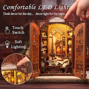 Kit de recanto de livro faça você mesmo, caixa de presente de aniversário de Natal para adolescentes, adultos, amigos, namorada, filha Beatuiful Decoração de casa — A aparência única e o design de cena requintado que decoram a casa são realmente agradáveis aos olhos. Kit de casa em miniatura Vivid Count Cat's Study Book Nook — Esta não é apenas uma decoração de casa, mas também pode ser uma casa de bonecas de recanto de livros para manter seus livros em ordem. Divertido de montar. Presente divertido de artesanato DIY — O processo de montagem é uma maneira muito saudável de relaxar e aliviar o desconforto. Presente precioso: o material de alta qualidade e o design exclusivo o tornam um ótimo presente para o Natal, aniversário e assim por diante. - ?Experiência DIVERTIDA DIVERTIDA?É uma combinação de diversão e lazer para terminar este kit de artesanato DIY de recanto de livros. Quase todas as cenas que você precisa criar para obter um ótimo senso de realização. Você pode fazer você mesmo ou adicionar mini bonecas ou quaisquer outras miniaturas como quiser. Adequado para pessoas com mais de 14 anos de idade. - ?Decorações de casa requintadas e fofas?Este kit de suporte de livros super fofo é mais do que um projeto de inserção de estante de livros DIY, também uma coleção requintada e decoração de quarto. Quando você olha para o canto vibrante da sua estante, ele pode oferecer um clima ensolarado e ajudá-lo a se acalmar para mergulhar no aroma dos livros e da natureza. - ?Ideia de presente perfeita? Ninguém recusaria um presente tão criativo e maravilhoso para ! Este kit de quebra-cabeça de madeira 3D para adultos e adolescentes é mais refinado do que um artesanato comum. Ótimo presente para seus entes queridos, familiares e amigos em dias especiais como aniversários, Natal, Dia de Ação de Graças, Dia dos Namorados, etc. - ?Tempo de qualidade com a família?Experimente este kit booknook como um presente artesanal para familiares, amigos e casais para ajudá-los a aliviar o desconforto. Horas de tempo de qualidade podem ser gastas com seus entes queridos para construir coisas e criar memórias doces. Mergulhe no minúsculo mundo único, deixe todos os seus problemas para trás e aproveite o processo de bricolage. - Aviso: o kit de recanto de livros DIY foi 100% cuidadosamente verificado antes da entrega para garantir que os acessórios estejam completos e não faltam. Se você tiver alguma dúvida durante a montagem, sinta-se à vontade para entrar em contato conosco. Resolveremos quaisquer problemas o mais rápido possível. Observação: Você precisa preparar cola líquida de silicone e duas baterias (tipo AAA).