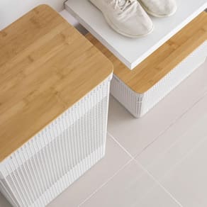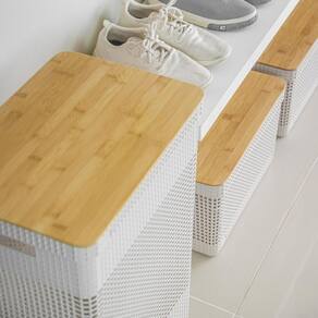 Os cestos possuem diversos tamanhos, são empilháveis e versáteis. São diversas opções com cores neutras e acabamento fosco, que combinam com qualquer ambiente. Podem ser utilizados em closets, cozinhas, lavanderias ou até mesmo na sala de estar para decorar.O Cesto De Roupas Grid Com Tampa De Bambu 49 Litros possui medidas de (39cm-profundidade x 29cm-largura x 55,6cm-altura) e a capacidade de 49 litros.Além de possuir tampa em bambu que traz um toque a mais de sofisticação e elegância para qualquer ambiente da sua casa. Os Cestos Grid são perfeitos para aliar organização e decoração na sua casaINFORMAÇÕES TÉCNICASDimensões: LxAxP: 29x55x39 cm.Material: PP (Polipropileno)Cor: Branco OceanoCUIDADOSSugere-se higienizar com sabão neutro e esponja macia, evitando produtos abrasivos no processo de limpeza.CONTEÚDO DA EMBALAGEM 2 Cesto Organizador Grid Com Tampa De Bambu 20 Litros1 Cesto De Roupas Grid Com Tampa De Bambu 49 LitrosSOBRE NÓSSomos apaixonados pelo que fazemos e utilizamos o design como meio de fazer você se sentir em casa onde estiver.Criamos produtos com carinho e cuidado para atender as suas necessidades diárias, levando bem-estar, aconchego e conforto para seu lar.Somos minimalistas e funcionais pois queremos que você tenha um estilo de vida mais leve e organizado, para atingir o máximo do seu potencial.Prazer, somos Ou.