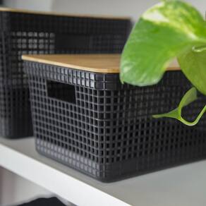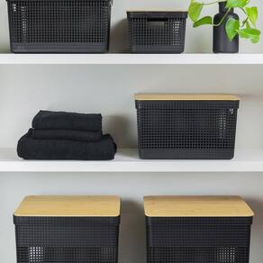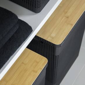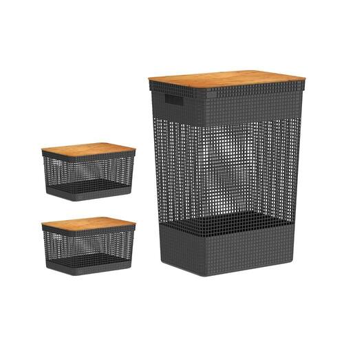 Kit de cestos organizadores com tampa de bambu Ou 3 peças Linha Grid