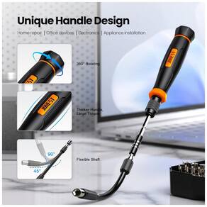Cabo ergonômico em TPR/PP com tampa rotativa e barra de extensão regulável para acesso a parafusos em profundidade.