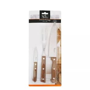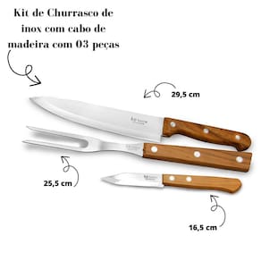 KIT DE CHURRASCO DE INOX E CABO DE MADEIRA COM 3 PÇS – 5965