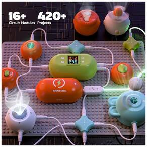 O kit de ciências SMILESSKIDDO RC1007 é um conjunto de eletrônica educativa com mais de 420 projetos possíveis, desenvolvido para introduzir crianças a partir de cerca de 5–12 anos aos conceitos básicos de circuitos elétricos. Ele utiliza 35 peças de circuito tipo snap (encaixe) — como chaves, LEDs, buzzer, ventilador, módulos de spray e iluminação RGB — que são montadas em uma base plástica sem necessidade de solda, bastando encaixar os módulos para formar ligações em série, paralelo e combinações com chaves.