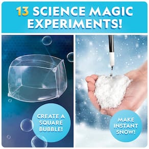 MAIS DE 130 EXPERIMENTOS EMPOLGANTES! Este kit contém 45 dos nossos experimentos mais populares de ciências da Terra, química e mágica, juntamente com um guia bônus repleto de 85 experimentos adicionais usando itens comuns do dia a dia. EXPLORE AS CIÊNCIAS DA TERRA! As crianças construirão e farão um vulcão entrar em erupção, cultivarão um cristal que brilha no escuro, criarão tornados de água e desenterrarão um fóssil real! Elas também receberão uma incrível seleção de rochas, minerais e cristais reais para a sua coleção. ADENTRE NA QUÍMICA! O conjunto de química deste kit possui tudo o que as crianças precisam para fazer minhocas viscosas e ovos de minhoca, criar reações borbulhantes, lançar um foguete com gás, fazer fogos de artifício de cristal que estouram e muito mais. EXPERIMENTE A MAGIA DA CIÊNCIA! Este kit também possui uma variedade de experimentos científicos que funcionam como truques de mágica. Algumas das mágicas científicas que as crianças aprenderão incluem mudar a cor da água, pegar bolhas nas mãos e fazer moedas flutuarem! PRODUTOS VENCEDORES DE PRÊMIOS! Blue Marble, vencedora do prestigioso prêmio Toy of the Year Award da Toy Association, desenvolve orgulhosamente produtos que incentivam a educação, imaginação e criatividade.