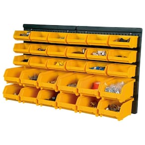 Kit de compartimento de armazenamento vidaXL preto e amarelo de 32 peças com painéis de parede — organizador versátil de polipropileno pesado para parafusos, pregos e peças pequenas