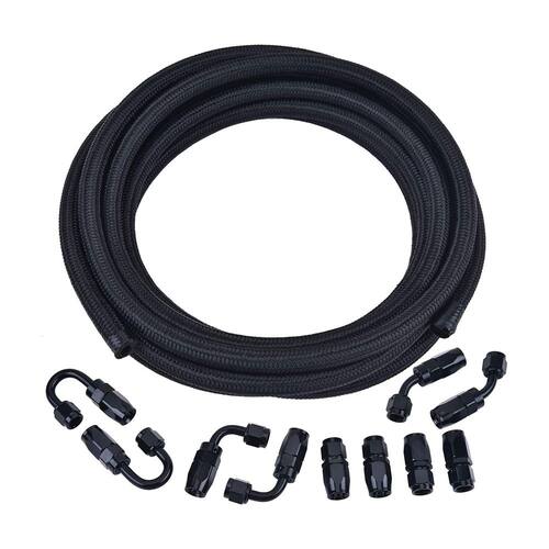 EVIL ENERGY é a nossa marca, somos um fabricante direto e profissional, um dos maiores fabricantes e exportadores de peças de ajuste, incluindo sistema de admissão, sistema de escape, sistema de motor, sistema de refrigeração, peças internas e externas. EVIL ENERGY 4AN Kit de linha de combustível CPE trançado de nylon 4 m Linha de combustível CPE trançada: Melhor para mangueira de freio. Recomendado para freio, álcool, nitro, transmissão, embreagem, nitroso, direção hidráulica, lubrificação, aplicações hidráulicas e vacoumum. Modelos universais: a mangueira de linha de combustível serve para diferentes marcas de carros diferentes. Basta escolher o tamanho certo. Não serve para E85. Características de segurança para sua proteção: o produto tem bom retardamento de chama e excelente resistência à corrosão. Longa vida útil: o CPE interno tem excelente resistência à corrosão. É livre de manutenção e projetada com precisão para aumentar a vida útil. Quantidade do pacote: 1 peça de mangueira CPE trançada de nylon de 4,6 m + 10 peças de encaixe de mangueira 4AN O instalador profissional é altamente recomendado!!!!! Leia as descrições detalhadas abaixo antes de comprar. ! - Feito de borracha sintética CPE e nylon trançado. - A mangueira 4an é feita de borracha CPE interna, com uma camada de fio de aço 304 e trança externa de nylon; os acessórios da mangueira são feitos de liga de alumínio. - Pressão operacional máxima: 750psi. Pressão de ruptura: 2250psi. Faixa de temperatura: -40 °C a 125 °C. - O pacote inclui: 10 pontas de mangueira giratórias 4an (4 peças retas, 2 peças de 45 graus, 2 peças 90 graus, 2 peças de 180 graus) e 4 uma linha de combustível trançada (comprimento: 16 pés). ID da mangueira: 0,6 cm. OD da mangueira: 1,1 cm. - A mangueira de combustível trançada pode ser compatível com fluido de transmissão, óleo, gás de corrida, vácuo, fluido hidráulico, diesel e combustível.