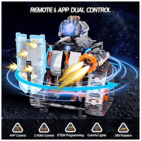 Controle remoto e de aplicativos: Em ambientes internos ou externos, pisos lisos ou estradas de montanha acidentadas, este conjunto de construção de veículos e robôs permite uma condução fácil de acrobacias. As crianças podem, por meio de um aplicativo ou usando controles remotos, fazer com que seu carro , robô execute as operações de sua escolha. O aplicativo de codificação é totalmente baseado em ícones e muito intuitivo, até mesmo iniciantes em codificação podem se divertir. e as crianças interagem com eles juntas.2.4G rc suporta 2 ou mais jogadores para jogarem juntos
