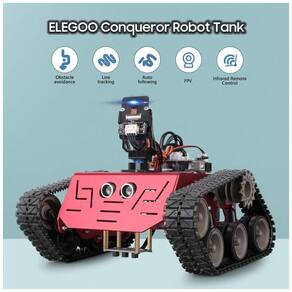O ELEGOO Conqueror Robot Tank é um robô de brinquedo esperto e inteligente com uma câmera de alta definição e projetado para adolescentes com mais de 13 anos.