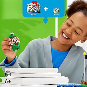 Os fãs podem adicionar diversão saltitante à sua experiência de jogo LEGO Super Mario com este Frog Mario Power-Up Pack (71392). Ele apresenta um traje de sapo interativo para LEGO Mario (figura não incluída), que dá ao jogador a chance de ganhar moedas digitais extras para fazê-lo pular, e aciona sons de respingos cada vez que ele pousa. Este conjunto é um presente ideal para crianças que definem tendências que possuem o conjunto LEGO Super Mario Starter Course 71360, que inclui LEGO Mario, ou o conjunto 71387 que inclui um boneco LEGO Luigi. As instruções de construção para este conjunto LEGO podem ser encontradas na caixa e no aplicativo LEGO Super Mario. O aplicativo é um fórum seguro para as crianças compartilharem ideias e oferece dicas de maneiras criativas de construir e brincar. Os conjuntos de brinquedos colecionáveis LEGO Super Mario trazem um personagem icônico de Super Mario para o mundo real. O Curso Inicial, Conjuntos de Expansão e Pacotes de Power-Up permitem que os fãs criem seus próprios níveis desafiadores para jogar sozinho ou em grupo.